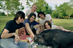 FB: How do you guys feel about the jump to bigger distribution with Gearhead? And a know name versus the label the first album was on. Mike: Yeah that helped a lot. Gearhead did a real good job and they helped a lot. A lot of it is jut how horrible the first label is. Their the worst fucking label ever! Horrible we fucking hate them! were not joking. We owe them another record, it’s coming out. I doubt anybody will ever hear it. He doesn't distribute it, he won’t do any ads. FB: Talk about the Chop Sakis? Mike: The Chop Sakis… Pat: That’s it I’m outta here. (laughter) (The rest of the guys get up and leave) Mike: Jealousey, Chop Sakis is me and not Mark but the other guitar player from the Marked Men. Then this guy Chris Pearce who played in a band called Tilt Wheel that has records out and stuff. Then Jeff Burkes brother. We recorded a record in 2000. Actually we started recording in ‘99 we finished in 2000. It sorta came out in 2001 and basically just now it’s getting ads and reviews. It’s kinda weird, it’s not something we work on real hard. Since the Marked Men are really busy and the Gamblers are really busy. It’s just know starting its momentum and rolling. So its kinda exciting and cool. That these songs I didn’t think anybody would get to hear are creeping out there. FB: How many shows have the Chop Sakis played? Mike: We’ve played a lot over the year, We’ve been on two tours. Week, week and a half long tours. This year we’ve probably only played, this year from today if you go a year back we’ve probably only played like eight shows. Something like that total. The Gamblers are kinda the main thing, but it’s cool to have a band I get to play guitar in. Write songs that don’t fit the Gamblers. FB: Who was the whole Europe experience for the Gamblers compared to touring the states? Mike: It was good. I’d say our European experience was like our fifth us tour. It wasn’t great, great, great. It was really good. There were a couple shows that were outta hand good. FB: I’ve heard a lot about the hospitality with the promoters. Mike: Yeah, there was food at all the shows and usually we had a place to stay, beds. It was good, it was really cool. There is a place in Holland called Groningen that has club called the VERA that’s probably the best club in the world. That’s where this guy Evert from Grunnen Rocks lives and it was insane. We were the only band that played and four hundred people came out to see us. They knew the words it was just insane, awesome, it was so good. For the most part Europe is good. There are some weird, this is my weird Europe story we were staying in Belgium and they had a band room it was in the same building as the club I went to sleep and about four A.M. I hear these people coming in there speaking in French. This guy and this girl got in bed right next to me, I could reach out arms length and touch them. They start fucking and there making French noises and stuff. I went and woke up Mark and I was like I think French people are fucking over there, and he was like I don’t know. He was across the room. I was maybe I’m making to be a deal about this, so get back in bed and look over and see this hairy French ass and balls fucking up and down. I was like NO, I cant handle this. I went and woke up our tour manger translator guy. Can you tell the French not to do this here and find another room if that’s cool. The girl was like I speak French I speak English, we will leave I am sorry. I was like were sorry were really tired we just played a show we’ve got a long drive tomorrow . It’s kinda weird then she like I’m sorry but he is not. The guy starts cussing me out in French. Telling me “You can not tell me where to go, you can not tell me what to do. I work here for ten years.” I was I’m sorry if you wanted to have sex you should halved asked us to stay somewhere else. “Why don’t you go back to Denton Texas, I like your band but you’re an asshole”. I was like ok. You can’t really talk too much about Texas to a Texan it really pisses us off . The line I wanted say the whole time and mean it. I gotta say it now “Hey if it wasn’t for us you’d be speaking German right now”. It was great then he left and came back in and our tour manger talked him down. I spent the whole night ready to fight French people, French Belgium's. FB2: So how much input did you have on the artwork of last album? Mike: That was kinda all our thing. We didn’t design it but we wanted all cock fighting for our theme. Kinda of a metaphor, we feel kinda like the cocks in the ring, the dirty ass ring. You get thrown in everybody’s making money but the chickens. They scratch and claw each other and they get nothing. Every body making money but the chickens. We fell like the chickens. FB2: It fits well, like the press photo with the hog. FB: Also the KFC eating. Mike: That was really weird that just happened to be, not actually not on a farm it’s like total suburbs in Sacramento in just a little condo apartment the next door neighbor just happen to have this ridiculous huge pig for a pet. FB: What’s next on the horizon for the Gamblers? Mike: We’ve got this uh, record it’s actually a collection of b-sides and some covers, and some new songs, also songs that never made it on record. We did kinda a cool thing and had some people write some songs for us. Jeff Burke from the Marked Men wrote some songs for us. Then you know they get Gamberlized. Jamie from the band that just played The Wednesdays just wrote a song for us and that’s on there. Hopefully it will come out on Dirtnap, if Dirtnap wants to do on vinyl. That’s what's were more excited about is the vinyl. FB: Is the B-sides comp going to have the first 7” which is long out of print on there? Mike: No, No. FB: It’s still a collectors item. Mike: Yeah that will be a collectors item. Worth over two dollars on E-bay, get it while it’s hot. FB2: Lets tal