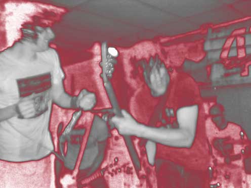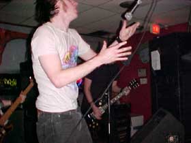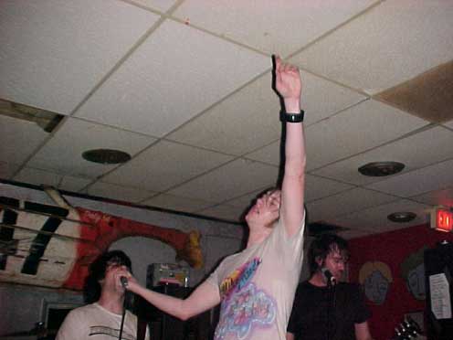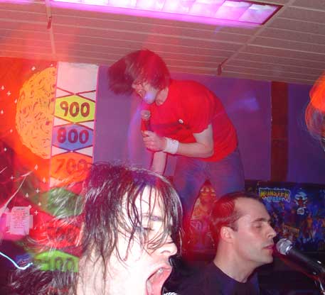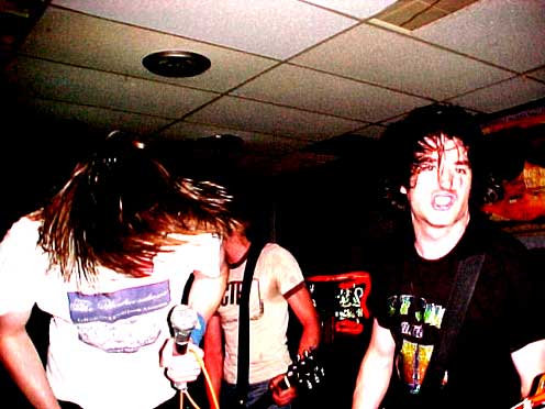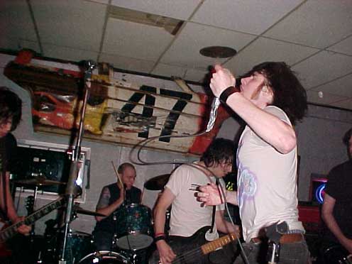 Mike: I got Chlamydia. Mark: Mike got mad at Patrick. Mike: No Pat’s real good looking and he was getting attention from all the ladies and it made me angry. While we were playing a show at the Clark side I got mad and swung around a mic and broke out some of his teeth. Smile so they can see your teeth. FB: I want to go on the record as saying the intro page on your web site you guys look like the Hanson brothers. Mike: That’s cool. I’m down with that. Pat: You mean the actual Hanson brothers from Slap Shot. FB: Yeah, If you guys had hockey sticks in there (the picture). We were going to buy some studio make up to black some teeth out, so you guys wouldn’t feel bad. Mike: I’d do it, I’d wear it. Much like the Hanson Brothers in the film. We play with toys on the road, Our back packs are filled with toys. FB: I was sadden but understood why you didn’t play the Replay, but I think you played some shows within a week after you were supposed to play. FB2: I think it was like three days later in Texas. Mike: It was kind of a weird thing he was pretty, even though it’s just a tooth missing now, he was pretty fucked up. When it happened his lip was huge and he had to go get surgery and stuff like that. |