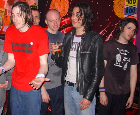 | FB: How did you manage to play three songs after it happened? Pat: I played two. Mike: No he played four. Mark: He played six. FB: I’ve seen the pictures of the blood flowing out of your mouth. Pat: They threatened me. I wouldn’t get my five dollar a day per diem. FB2: You were gonna get fired from the band basically. Mike: Yeah, were slave drivers. Our management keeps all in line. FB: So what happened to Colin. Mike: Mark killed him. FB: I hear he’s going to school. Is he out of the band for good? Mike: Yeah, he’s got a baby girl. He studying babies and child rearing. FB: So Mark has double duties in Marked Men and now in Riverboat Gamblers? Mike: Yeah but we’re probably just gonna beat up the other guys in the Marked Men so they can’t play shows. We’ll just call and threaten them constantly. Mark: I don’t mind. Mike: Kinda like the mafia. Were going to strong arm them, “Mark Ryan’s not playing any more shows”. FB: How do you feel about the first album compared to the new one? I feel like the newer one is more a representation of the live show. Mike: We go it more right, the first album we went in... Mark: Documents of the time. Mike: We were like whoa, were in a real studio. Tim Kerr is here, and he’d never seen us before. He was like “I don’t know, do what ever. What there’s wind chimes put ‘em in”. We didn’t really know. We were more focused on the second record. We knew a lot more what we wanted to do. FB2: You said last time Speedo (from Rocket from the Crypt) almost produced it. Mike: We e-mailed with each other but I don’t really know him or anything. Maybe the next one. FB: The second album has a lot more energy. Mike: We went for a different guitar sound and just went for it bigger. We spent a lot more money on mastering it. Which helps a lot. I really don’t understand what mastering is , but I just makes it louder. We spent a lot of money on that. Subjectively, not really a lot of money but a lot of money to us. Eleven dollars is a lot to us. |